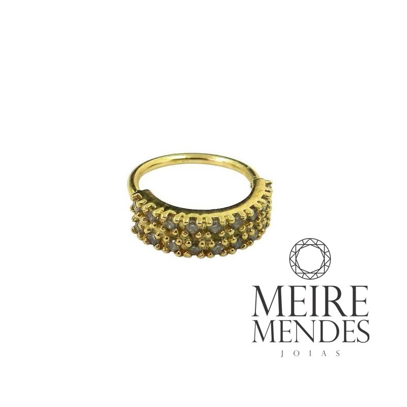 Piercing para orelha (cartilagem) de ouro 18 k, com duas fileiras de zircônias cravejadas. Acabamento polido. Ideal para quem tem a perfuração próxima a extremidade da orelha.
