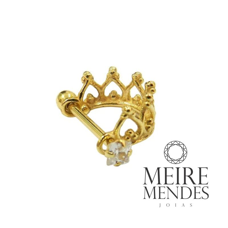 Piercing para orelha (cartilagem) de ouro 18 k, com uma pedra de zircônia na haste. Acabamento polido. Ideal para quem tem a perfuração próxima a extremidade da orelha.